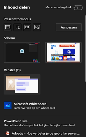 Функционал общего доступа к экрану или к окну в Microsoft Teams приобрёл новые возможности. Стало проще и понятнее делиться своим экраном или одним из открытых окон. Презентация PowerPoint, которую все недавно использовали, также доступна в этом представлении, поэтому её можно быстро представить через PowerPoint Live.