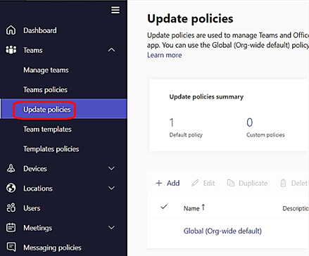 - Перейдите в раздел Teams > «Обновить политики» / «Update policies».