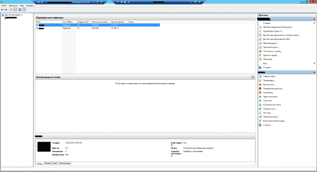 Подключаемся к виртуальной машине в Azure (факт наличия VPN-туннеля играет здесь важную роль: с его помощью все компьютеры в одной виртуальной сети и, через это мы можем, в теории, подключиться к любому компьютеру\серверу в организации), находим в списке наш наземный сервер виртуализации и пытаемся вызвать консоль управления, чтобы посмотреть, какая из служб нуждается в перезапуске: